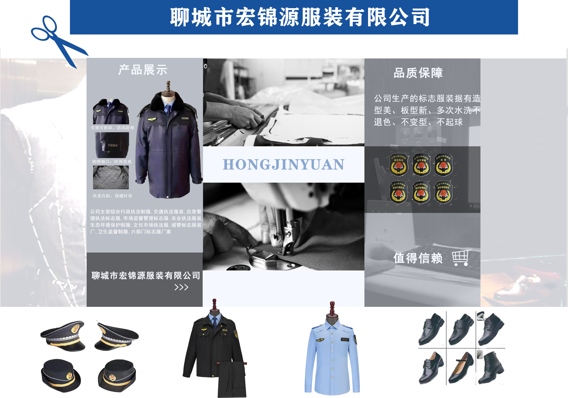 聊城市宏錦源服裝有限公司位于江北水城—山東聊城,地理位置優(yōu)越,交通便利。公司主營綜合行政執(zhí)法制服,交通執(zhí)法服裝,應(yīng)急管理執(zhí)法標(biāo)志服,市場監(jiān)督管理標(biāo)志服,農(nóng)業(yè)執(zhí)法服裝,生態(tài)環(huán)境保護(hù)制服,文化市場執(zhí)法服,城管標(biāo)志服裝廠,衛(wèi)生監(jiān)督制服,六部門標(biāo)志服廠家等,值得信賴! 公司生產(chǎn)的標(biāo)志服裝據(jù)有造型美、板型新、多次水洗不退色、不變型、不起泡。 “認(rèn)真辦事,踏實做人”是宏錦源的企業(yè)精神,我們的宗旨是:“用服務(wù)與真誠來換取你的信任與支持,互惠互利,共創(chuàng)雙贏!”我公司愿與國內(nèi)外各界同仁志士竭誠合作,共創(chuàng)未來企業(yè)目標(biāo):在已選定的服飾領(lǐng)域中,成為行業(yè)的卓越者。 經(jīng)營理念:追求產(chǎn)品卓越,為用戶提供完美、高效的服務(wù)。...